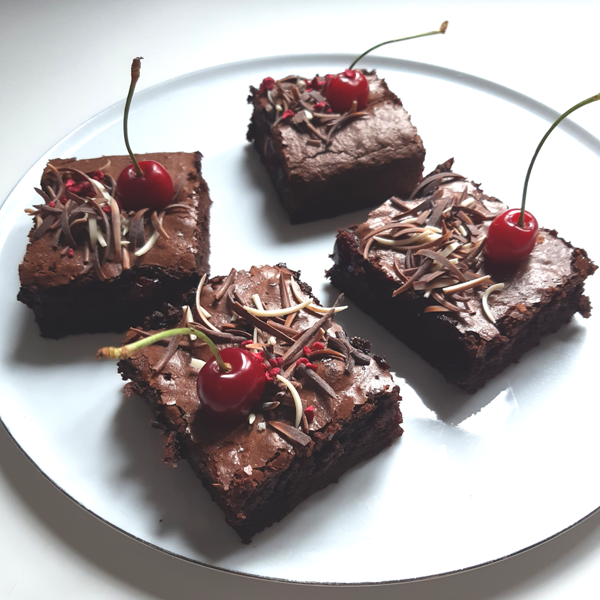 Tõelisele šokolaadiarmastajale kirsiüllatusega brownid. koostisosad- nisujahu, tume šokolaad, suhkur, muna, kirsid, sool, kakao, või