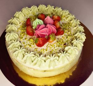 Huvitavate maitsete ning koosluste armastajale imeline valik. Õhuline biskviittort, mis täidetud toorjuustu-pistaatsia kreemi ja vaarikatega. koostisosad- toorjuustu pistaatsiakreem, vaarikad, pistaatsiapähklid, muna, nisujahu, suhkur, sool