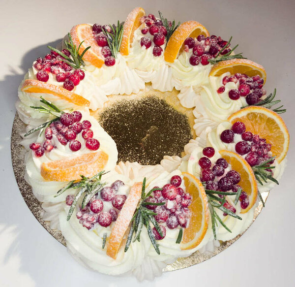 koostisosad- munavalge, tärklis, suhkur, veiniäädikas, mandariini kreem, toorjuustu- vahukoorekreem, värsked marjad