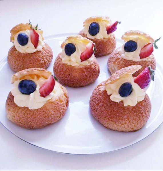 Kuldne ning krõbe ümbris on seest pungil erinevate imemaitsvate kreemidega. koostisosad- või, jahu, muna, sool, suhkur